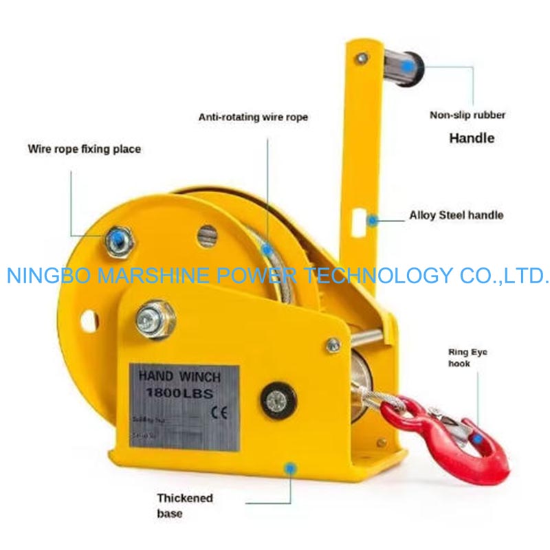 マーシャイン1800lbポータブルハンドウィンチケーブルプーラーウィンチは、建設現場に適しています。ここでは、小さなツールや材料を足場まで引き上げることができます。時々、ボートの所有者がそれを使用してエンジンまたは機器をトレーラーに引っ張ります。また、農場にも役立ちます。これは、飼料袋を持ち上げたり、家畜の囲いを固定するのに役立ちます。また、消耗品を運ぶことができるオフグリッドキャビンなど、電力のない遠隔地にも最適です。